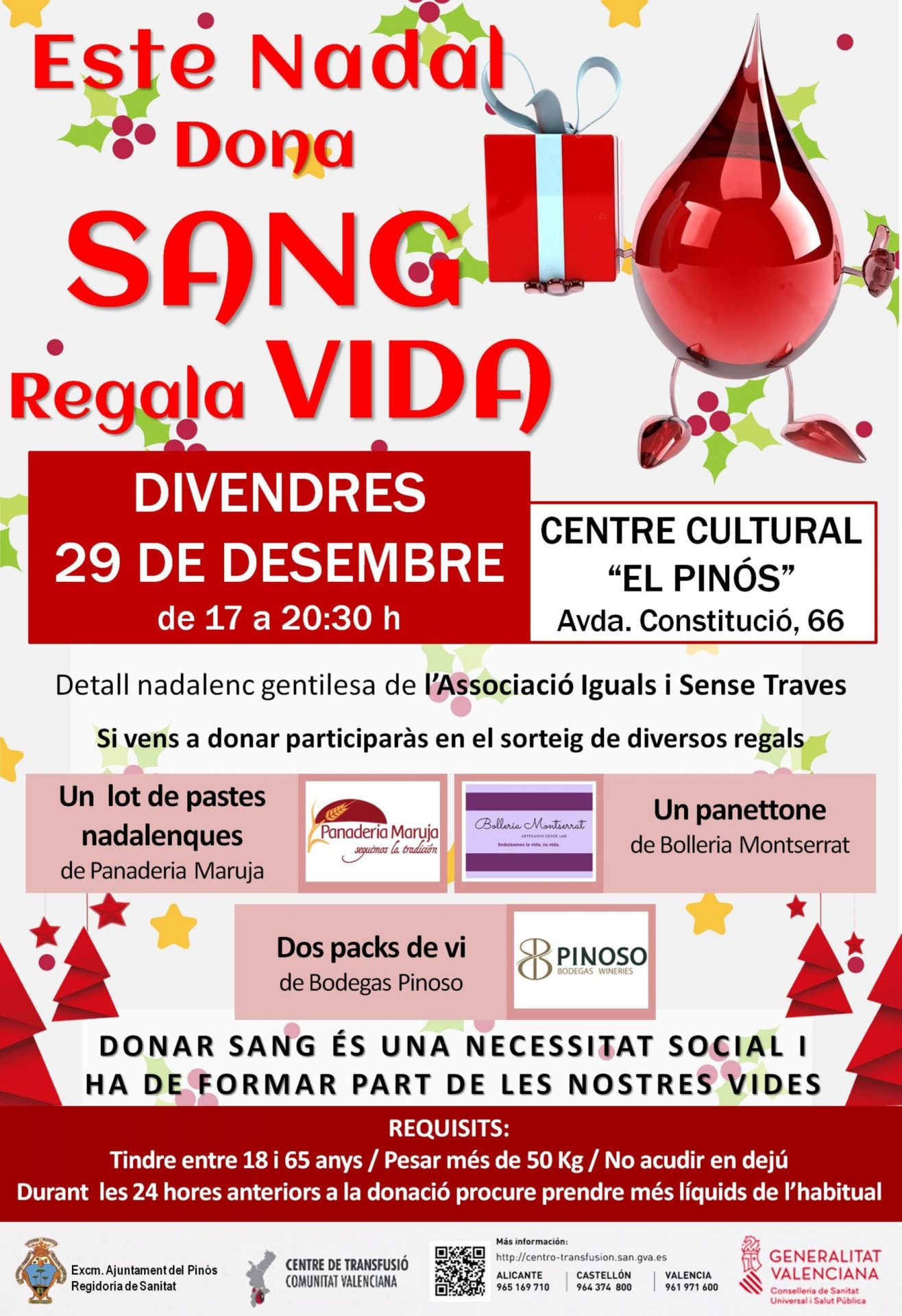 Entre les persones que s’animen a donar es sortejaran diversos regals gentilesa de firmes locals “Este Nadal dona sang, regala vida” és el lema de la donació extraordinària que tindrà lloc el divendres 29 de desembre al Centre Cultural El Pinós, de 17 a 20:30 hores, dins les festes de Nadal. Donar sang és …