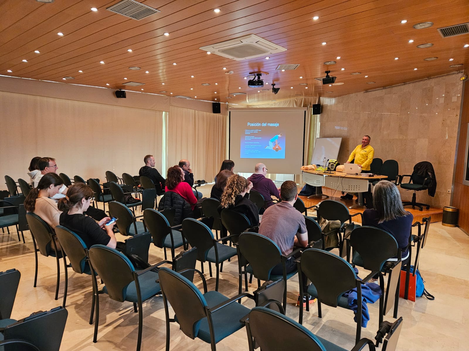 Carlos Morón, instructor de la empresa DYA, haa sido el encargado de la instrucción teórica y práctica, dando a conocer las técnicas vitales de reanimación cardiopulmonar (RCP) que incluyen compresiones torácicas y respiración boca a boca, junto con el uso de un DESA para administrar descargas eléctricas en casos de paro cardíaco, así como , primeros auxilios, obstrucciones de las vías aéreas , contención de hemorragias y fracturas, aspectos que contribuyen a que la ciudadanía pueda responder responder adecuadamente en situaciones de emergencia médica, mientras acuden los profesionales