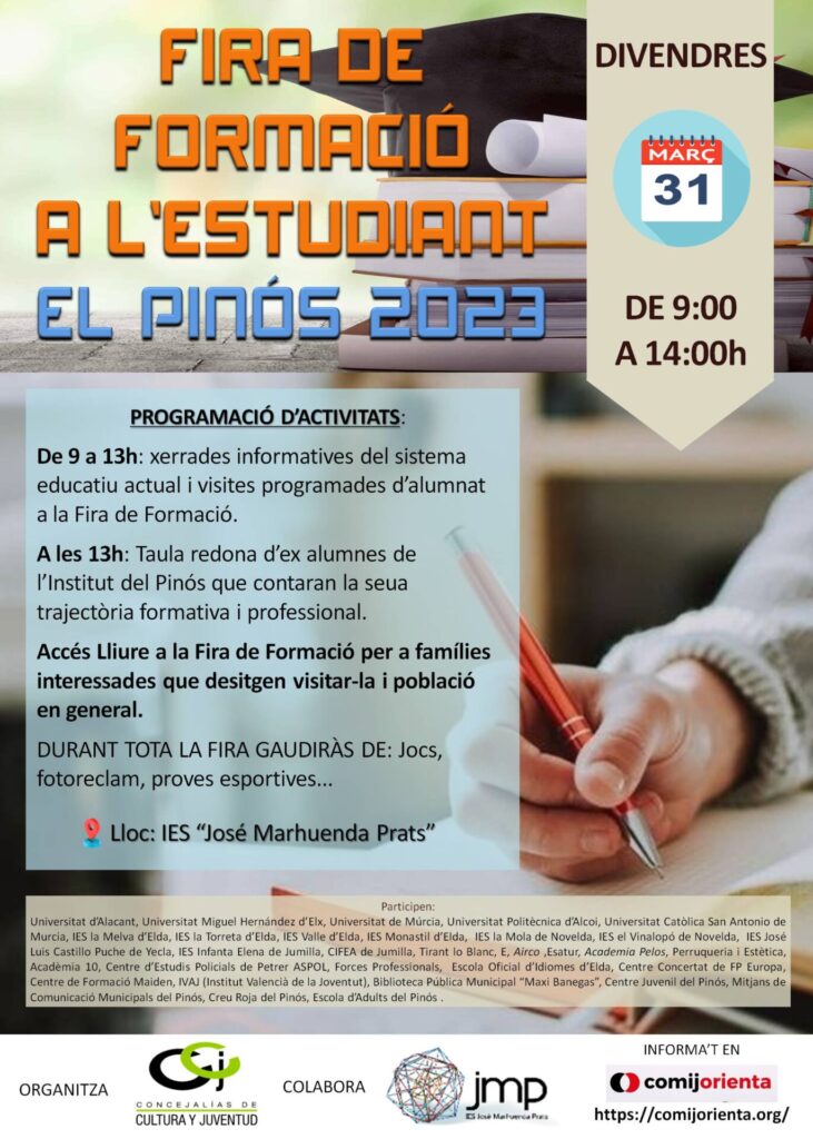 Desde hace varios años, Pinoso acoge estas jornadas de Educación con charlas informativas sobre el sistema educativo actual así como visitas a la Feria de Educación que se realiza en el instituto José Marhuenda Prats.