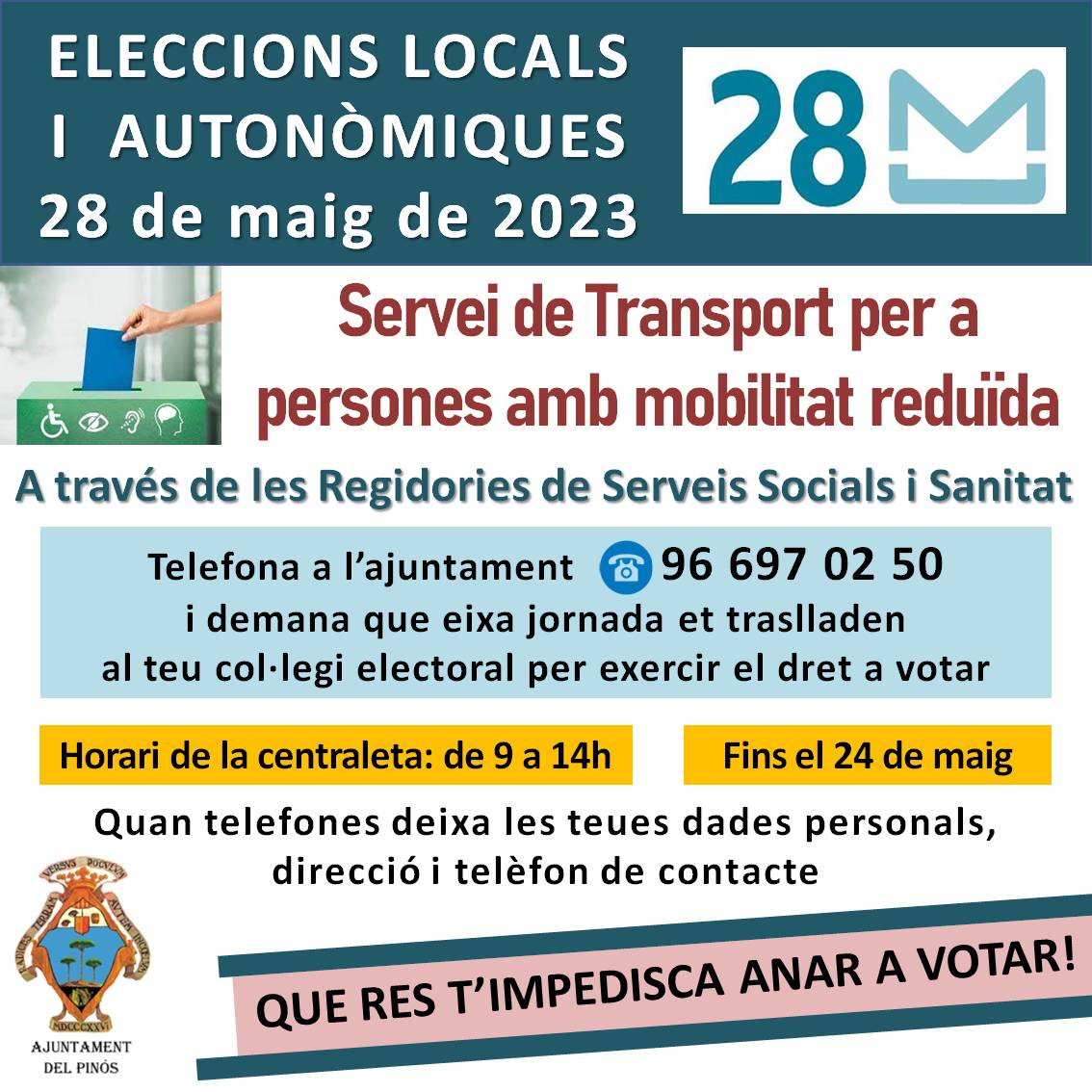 La Regidoria de Serveis Socials i Sanitat facilitará el trasllat per a votar a les persones amb mobilitat reduïda