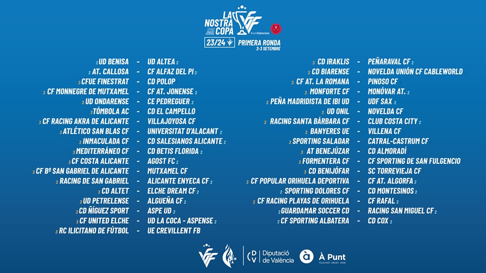Cuadro con los emparejamientos de varios equipos de la provincia de Alicante