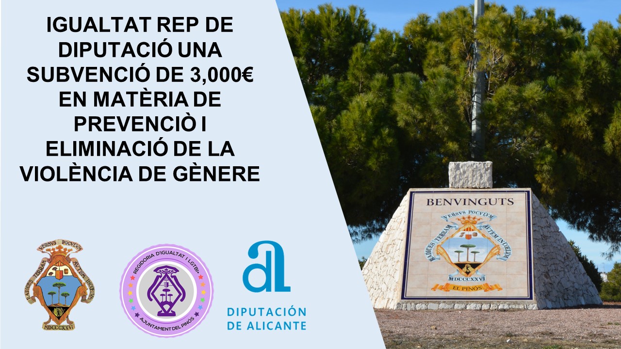 La Diputació d’Alacant ha concedit una ampliació de crèdit i distribució de la convocatòria de la subvenció a ajuntaments amb destí a programes i activitats per la igualtat que ha dotat de 3.000€ a l’Ajuntament del Pinós que ha aprofitat per a destinar a estes dos activitat.
