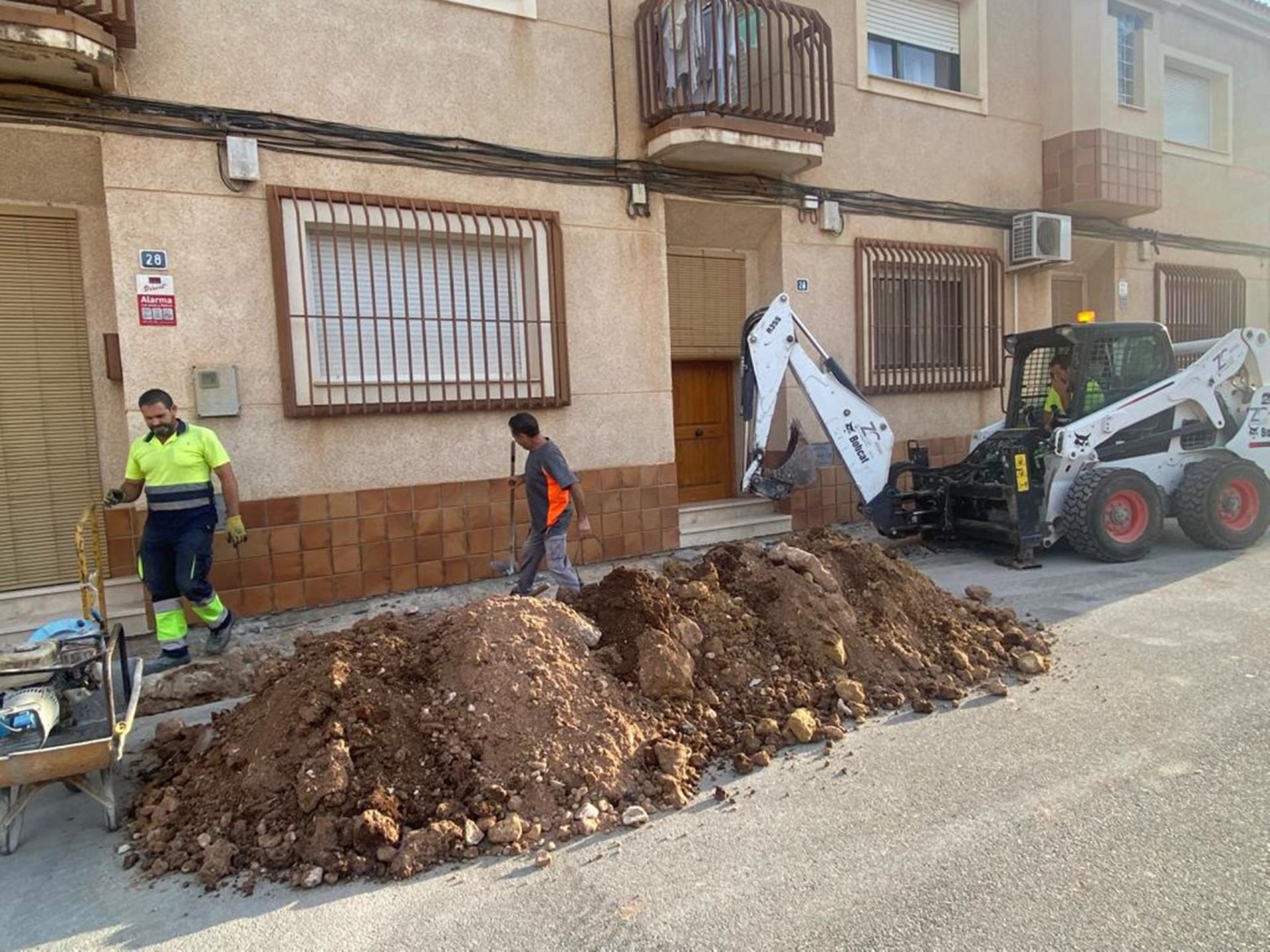 Desde hace unos días se llevan a cabo los trabajos de renovación y mejora de la red de saneamiento y abastecimiento de agua potable en la calle Elda y viario anexo, una actuación incluida en el Plan+Agua 2022, con lo cual ya se ha procedido a levantar aceras, ejecutar zanjas y proceder a eliminar las conducciones antiguas, que originaban fugas y filtraciones.