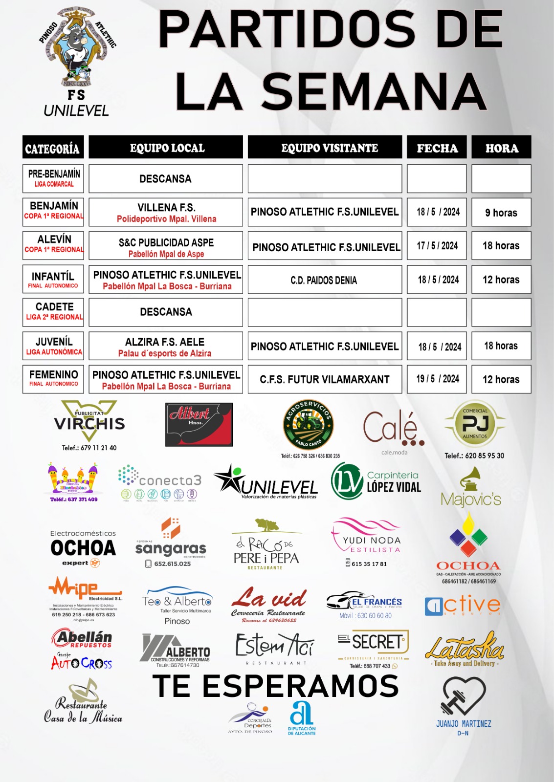 Por último, el equipo juvenil en su primer año en autonómica, y con jugadores de primer año, no depende de si mismo, se puede proclamar campeón si vence al Alzira en su campo el sábado a las 6 de la tarde y el Mislata, actual líder, pierde su partido.