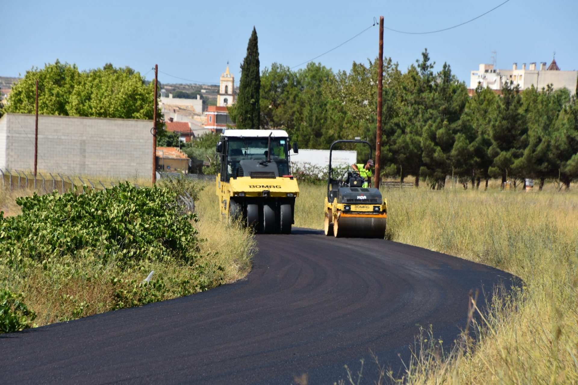 La empresa alicantina MOA ( Mediterráneo de Obras y Asfaltos), está procediendo a colocar una capa de asfalto, en gran parte del camino.