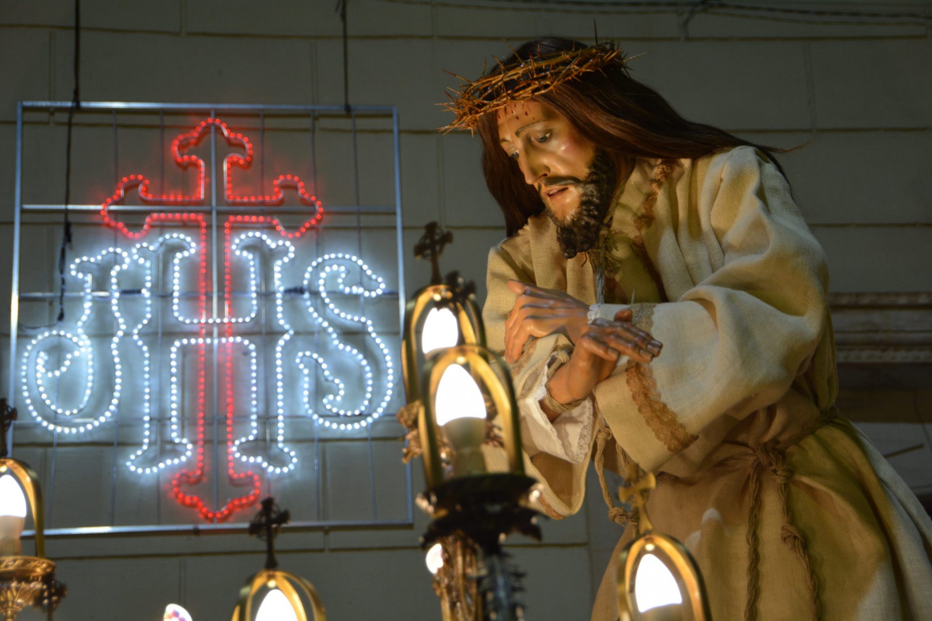 Pinoso ha recordado esta noche el momento crucial del prendimiento de Jesús en una de las dos procesiones que se celebran este Miércoles Santo en la localidad, la denominada de Jesús Preso, que ha vuelto a recorrer las calles del centro urbano.