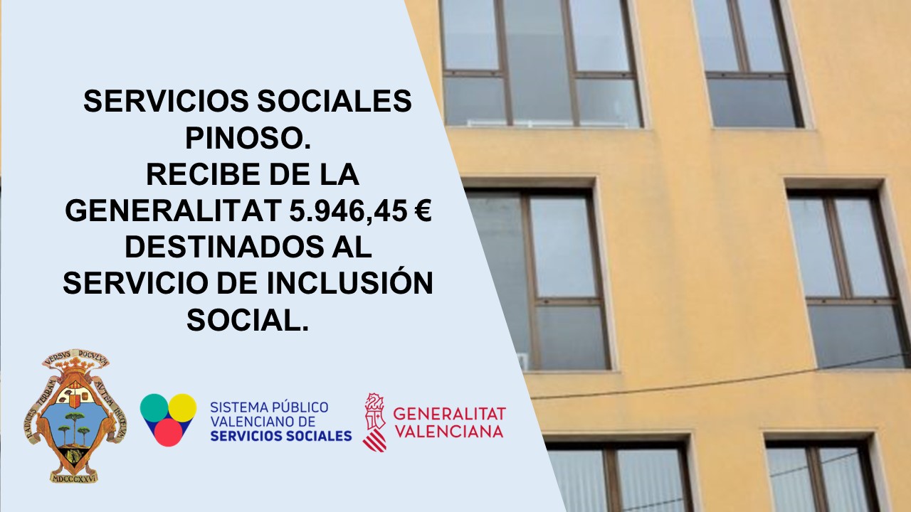 El Ayuntamiento de Pinoso ha recibido una subvención de 5.946,45 euros para la anualidad 2024, concedida por la Generalitat Valenciana, a través del Contrato Programa entre la Vicepresidencia y la Conselleria de Servicios Sociales, Igualdad y Vivienda y el Ayuntamiento de Pinoso, para la atención del Servicio de Inclusión Social (Apoyo a familias e infancia. Periodo Estival).