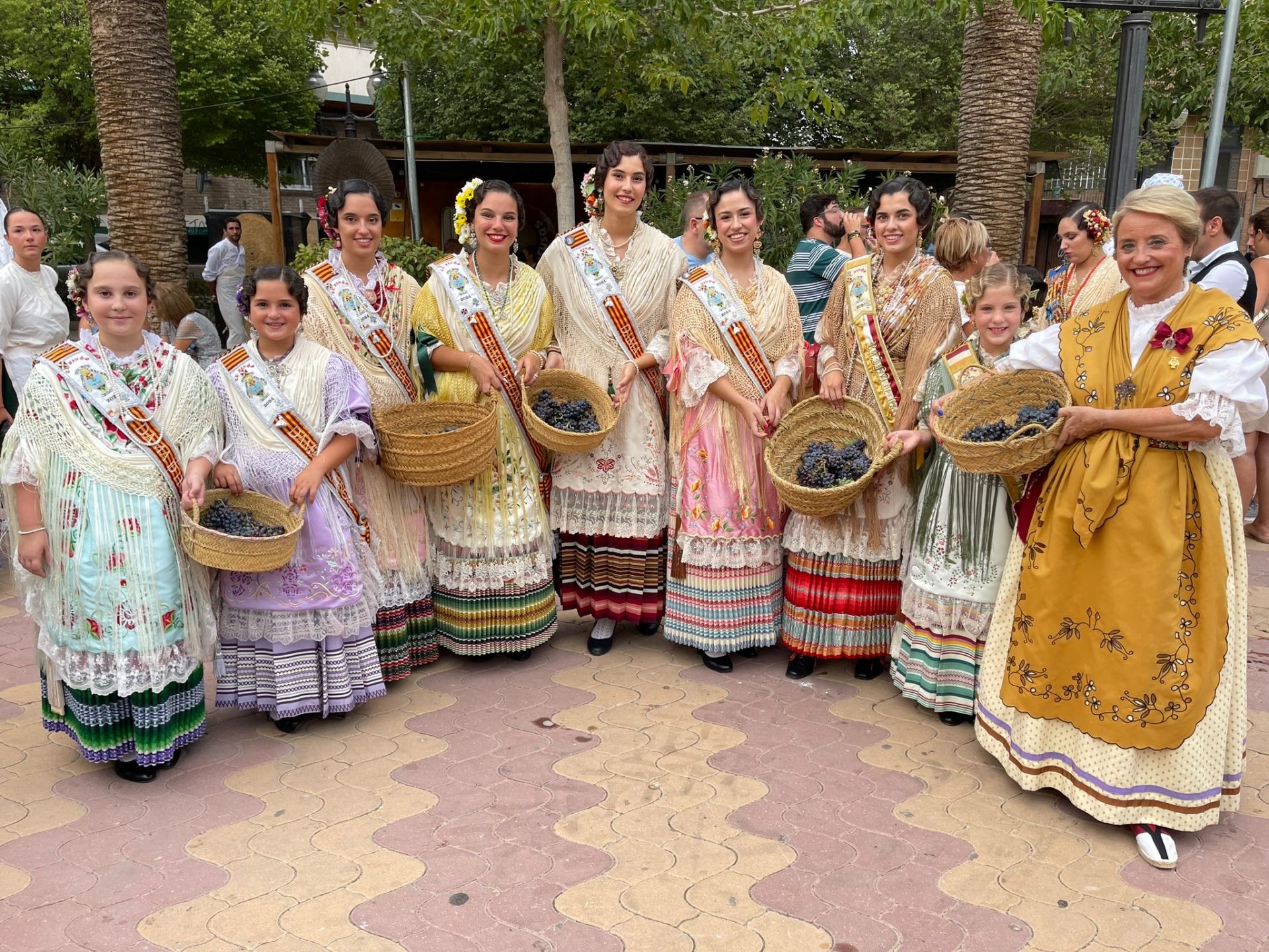 La reinas infantil y mayor de las Fiestas de Pinoso Nuria Pérez y Nantai Navarro junto con su corte de honor, la concejala de Fiestas Elisa Santiago y varios integrantes de la comisión de Fiestas, se desplazaron hasta la vecina ciudad con el fin de participar en este acto tan emblemático.