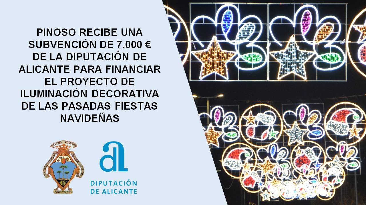 El Ayuntamiento de Pinoso ha recibido de la Diputación Provincial de Alicante una subvención de 7.000 € para la financiación del gasto de la iluminación decorativa de las pasadas fiestas navideñas.